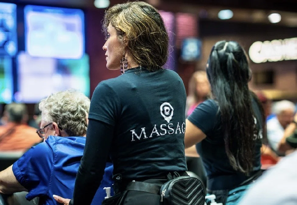 All services must remain within the therapist’s legal scope of practice. Casino massage is strictly upper-body only—neck, back, shoulders, and arms. Therapists must not perform any intentional adjustments, and should avoid the feet and legs entirely. In a casino environment, minimal conversation is encouraged to avoid distracting players or interfering with the game. When speaking with guests, casino staff, or fellow therapists, professional language and tone must always be maintained.
